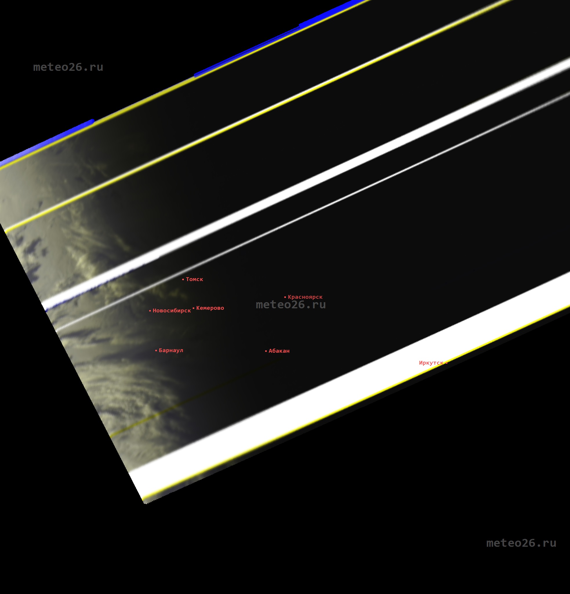Таким образом, на данных фотоснимках можно наблюдать актуальное состояние атмосферы над Красноярским краем (и не только): облачность, дым от лесных пожаров и прочее.